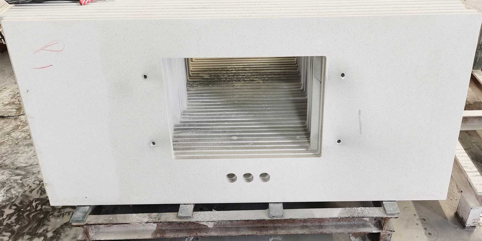 We supply Sparkling White Quartz vanity tops, prefabricated quartz countertops, and cut-to-size quartz countertops for bathrooms, kitchens, and commercial projects.